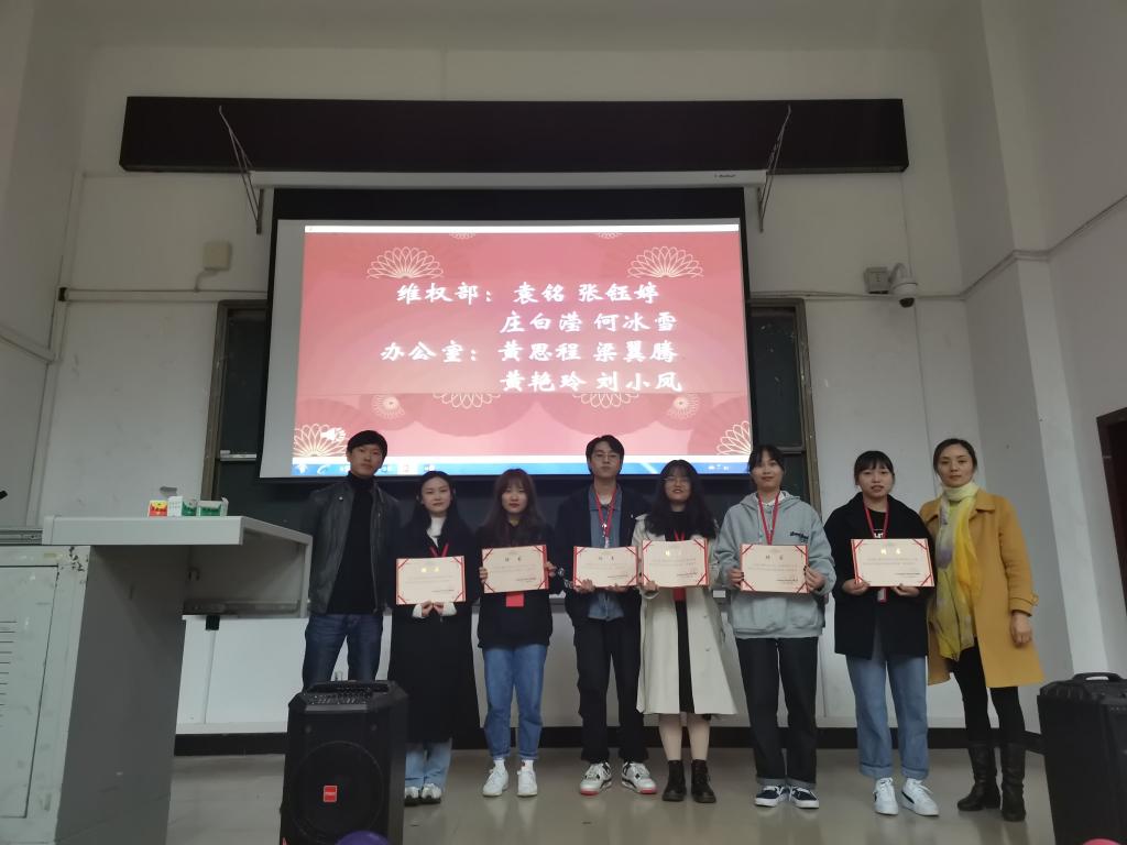 首先,由党支部副书记陈俊杰老师为大会致辞。陈老师对第十八届学生干部提出了期望,并祝愿第十七届学生干部在以后的学习、工作、生活中越来越好。随后,各位老师为第十七届团总支学生分会干部们颁发聘书并合影留念。