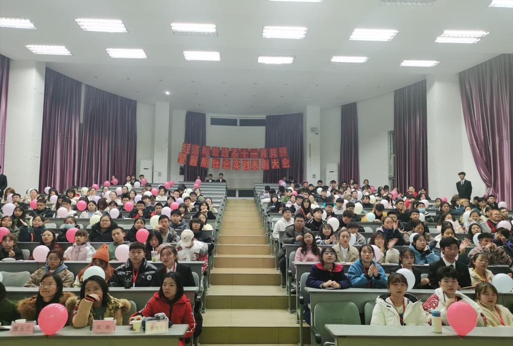 2020年11月30日晚19:00,由经济与管理系团总支学生分会主办,社践部、女工部承办的十一月月评暨暑期社会实践表彰大会于尚学楼D101准时举行。本次大会莅临的嘉宾有:经济与管理系团总支书记瞿慧芹老师,18级辅导员周墨老师、杜丽老师,19级辅导员杨诗怡老师、20级辅导员曹玉兰老师,班主任何雨舟老师、皮路老师,申慢慢老师。18届团总支学生分会全体学生干部以及20级各班班委参加了本次活动。