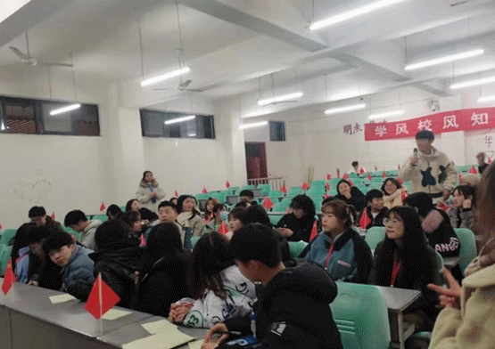 2020年12月16日晚19:20,由四川职业技术学院团委主办,经管系学习部承办的学风校风知识竞赛在尚学楼A403成功举行。经管系学生分会主席朱继松、副主席张巧怡以及各部门、各协会负责人及部分同学观看了竞赛。