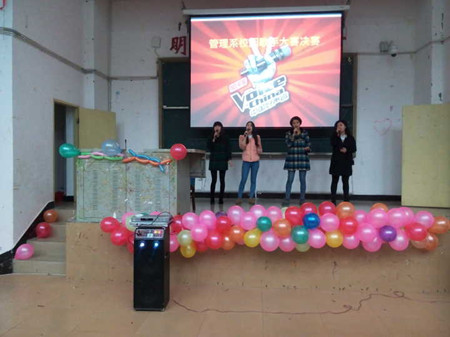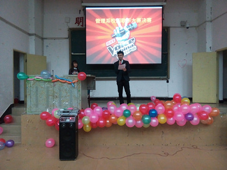 2014年11月17日晚7点30分,由院团委主办,我系承办的校园歌手大赛在D101隆重举办。管理系文艺部部长陈剑威,副部长田树焕,王娜担任大赛评委,出席此次大赛的有:管理系学生分会主席刘自强,各部门部长及全体干事。