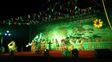 一曲充满民族特色的开场舞为晚会拉开了序幕。同学们在藏族同胞热情歌舞中,领略藏族文化,感受藏族风情。我们在载歌载舞的《新的一年》中,感受他们对新年的深深祝愿;在舞姿婉转的《卓玛的未来》中,看到藏族同胞对生活的热爱;在深情演唱的《不变的感情》中,体会各民族恒古不变的情谊。充满民族特色的《锅庄魂》,更是在欢快的节奏,跳跃的音符中将晚会推入高潮。文艺表演结束后,同学们迎来了期待已久的篝火表演。所有的人一起随着音乐节拍,舞动起来,跳起锅庄,感受藏族文化,在一片欢乐的海洋中晚会落下帷幕。
