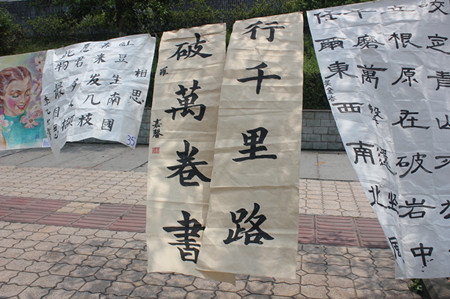 为丰富校园文化建设,提高大学生文化素养,我系宣传部于2014年4月17至18日期间在二食堂门口举办了以“写出人生,画出精彩”的书画大赛主题活动。
