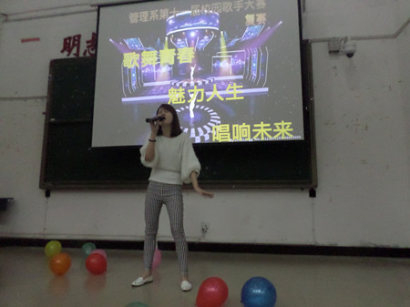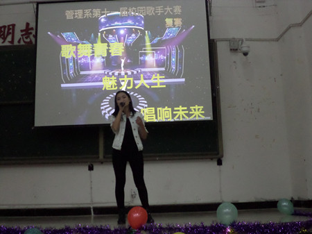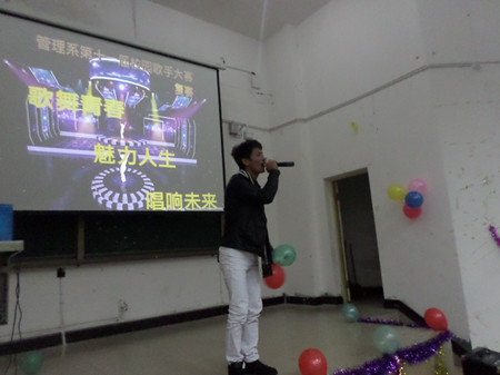 2013年11月14日晚7点,我系在D201举办了第十一届校园歌手大赛复赛。担任此次比赛的评委有:管理系团总支副书记徐盼、学生分会副主席董发贵以及管理系两会干部。