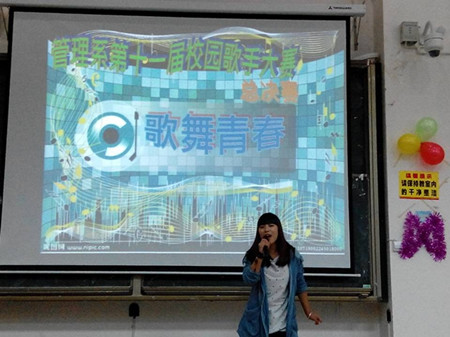 2013年11月15日晚7点,管理系第十一届校园歌手大赛决赛“歌舞青春”在B309隆重举行。管理系团总支书记瞿慧芹、副书记徐盼、学生分会副主席董发贵以及第十届文艺部部长何蓉、张威等作为评委出席了活动现场,两会干部及各班代表作为嘉宾观看了本次比赛。