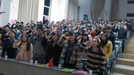 一曲动感的开场舞为活动拉开了序幕,同学们用饱满的热情向我们展示了青春时代的爱国激情。在学习部干事的带领下全体成员庄严宣誓,至此活动正式开始。一首深情朗诵《历史不会忘记》,让我们回顾了那些为祖国事业献身的先烈;充满爱国的情怀中场游戏《简答题,听歌猜名》更是将活动的气氛引向高潮。最后,在大合唱《国家》的歌声中活动圆满落幕。