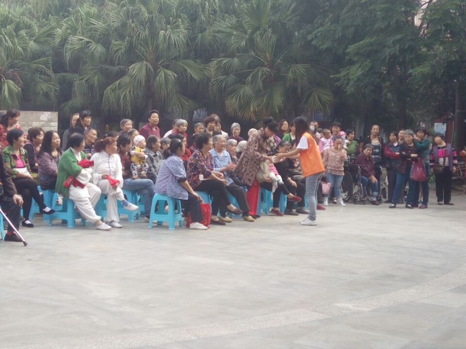 到达目的地,负责人邓晓蓉首先向老人们进行了全体介绍。随后,由全体成员齐跳了一段活力四射的“健美操”,希望老人们永远18岁,老人们站起来纷纷鼓掌,十分欢喜。接着,由周大伟、代涛两位同学表演了一段幽默诙谐的双簧,赢得一阵阵好评和掌声。紧接着,同学们与老人聊天,谈心,老人们告诉同学们,希望好好学习,以后找到一份好工作,孝敬父母,回报社会。最后,表演在一段曼妙的“孔雀舞”和一曲悠扬的“口琴”声中结束。临近12点,同学们与老人将分别,大家都十分不舍,但看见老人们脸上挂满了欣慰舒心的笑容,此行也非常有价值。