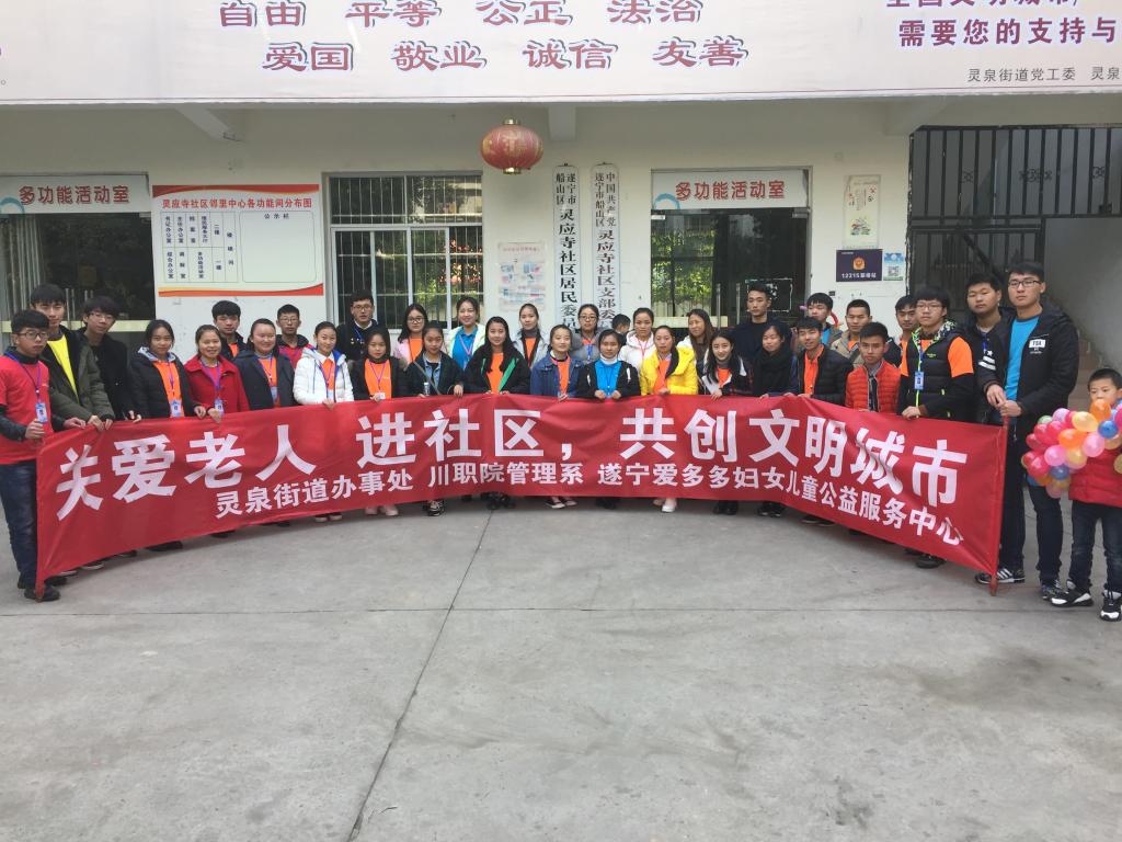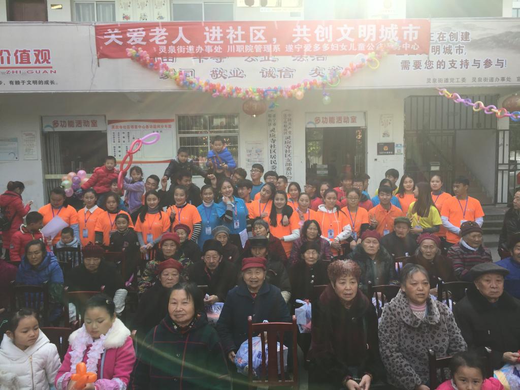 为增强同学们的社会责任感,培养大学生乐于奉献的精神。2016年11月26日上午,由我系团总支主办,社践部承办的以“关爱老人 进社区”为主题的进社区服务活动在灵泉寺社区成功举办,我系两会干部及干事参加了此次活动。