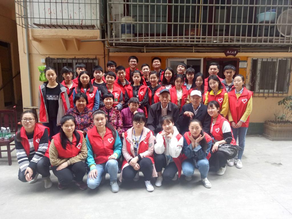 2017年4月28日上午8点整,管理系近三十名志愿者前往社区开展慰问老人活动。