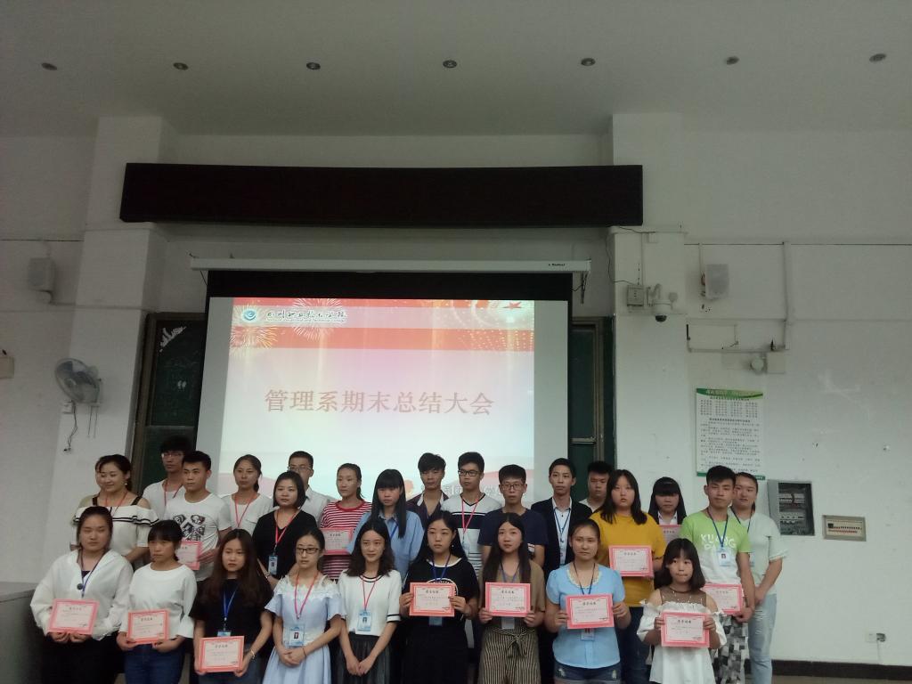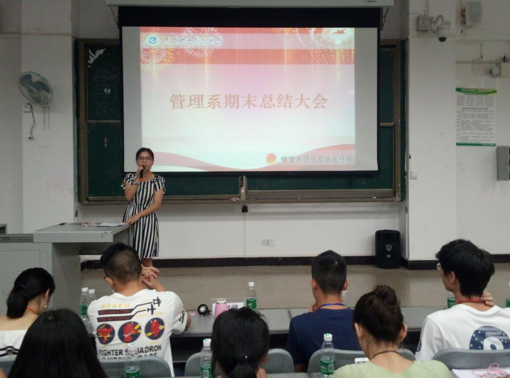 2017年6月25日晚7点40分,由院团委主办,管理系学团总支学生分会办公室、文艺部承办的期末总结大会在B109准时举行。管理系团总支书记瞿慧芹老师出席了本次大会,两会干部、干事、16级各班班长、团支书及优秀寝室代表参加了本次大会。