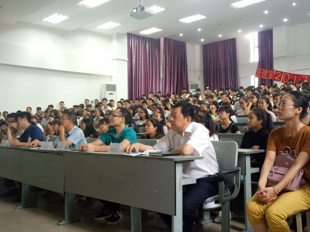 2017年9月8日上午9点整,管理系在B109隆重开展了2017级新生开学典礼暨入学教育,参与此次活动的有管理系主任姚进昆、党总支书记伍治平副教授、团总支书记瞿慧芹、17级辅导员及班主任、教师代表陈俊杰、16级学生代表周榆林、17级新生代表魏艳及17级管理系全体新生。