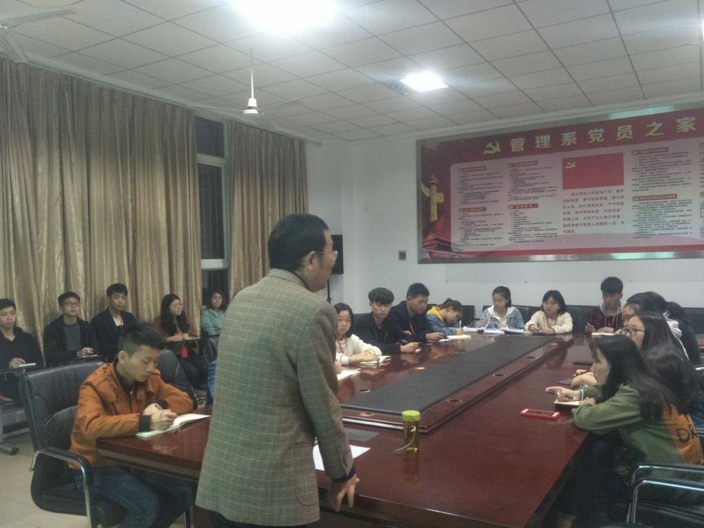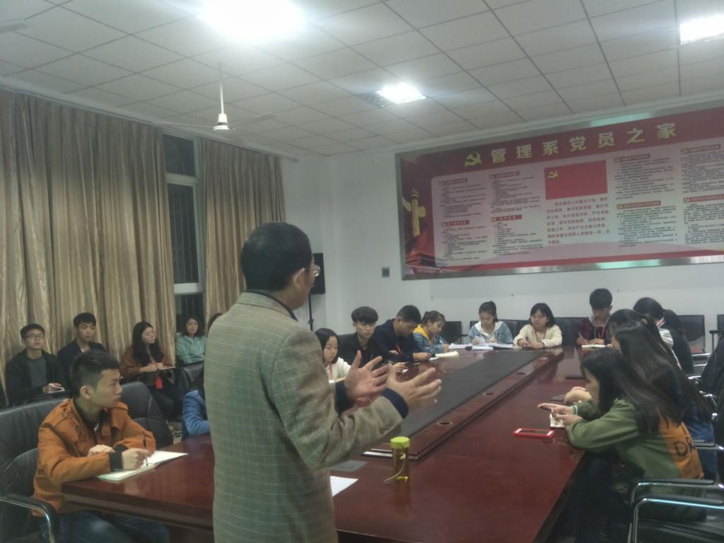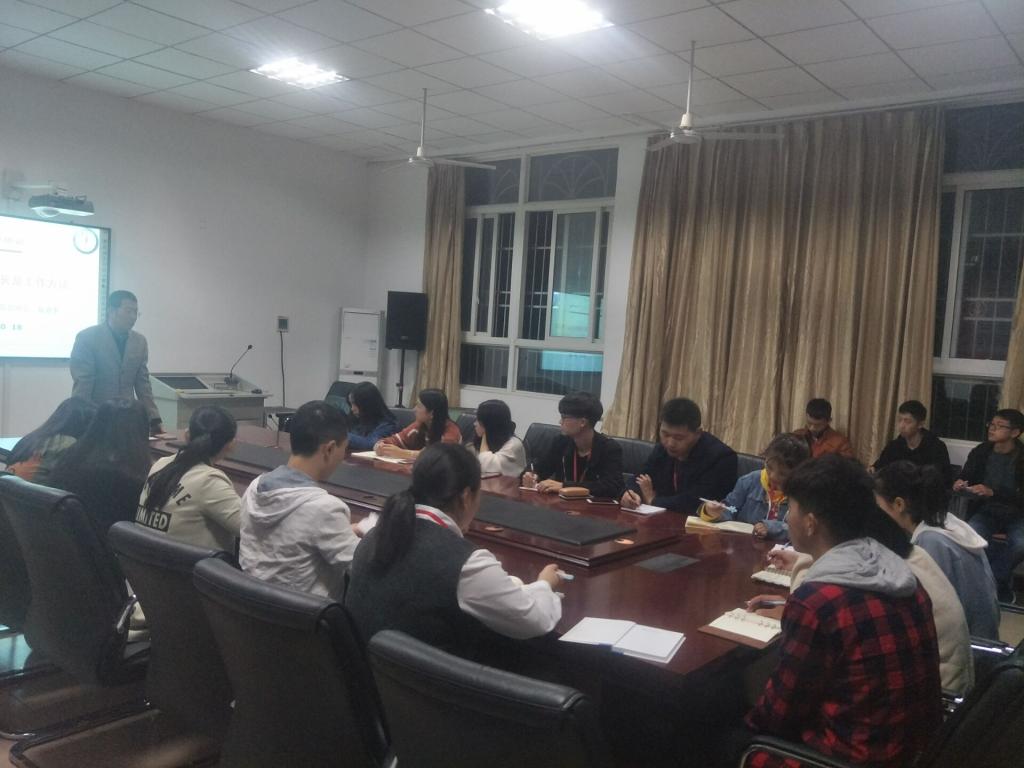 为促进我系学生工作的顺利开展,第十五届学生干部培训会议于2017年10月17日晚7点准时召开。会议地点为厚德楼四楼商务洽谈室,党总支书记伍治平副教授为主讲老师。我系团总支学生分会各部门负责人及协会负责人参加了本次会议。