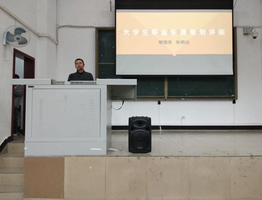 为提高大学生对职业生涯规划的能力,2017年10月26日晚7点30分,我系在D201举办了大学生职业生涯规划讲座。15级辅导员张明远老师作为主讲人、团总支副书记邹静、各部门负责人及17级全体学生聆听了本次讲座。