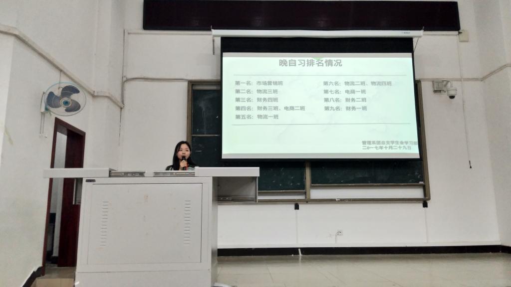 2017年10月29日晚7点30分,我系十月月评大会在D201准时举行。参加本次大会的有团总支副书记邹静、学生会主席张杰、各部门负责人、17级全体干事及班委、优秀寝室室长及协会优秀干事。