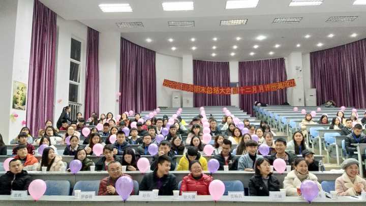 2017年12月28日晚7点40分,我系期末总结暨十二月月评大会在D201准时举行。团总支书记瞿慧芹老师、党政办主任赵伟老师、辅导员张明远老师、兰涵老师,班主任徐天骥老师、罗春雨老师出席了本次大会。主席张杰、三会干部、全体干事及班委参加了此次大会。
