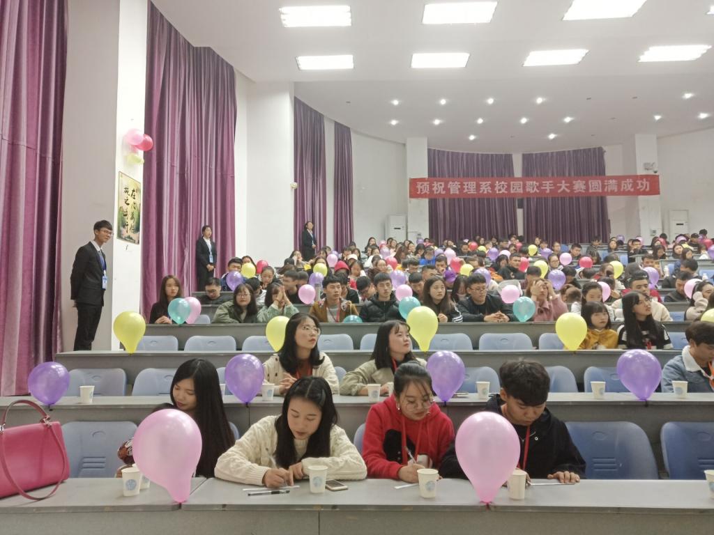 2018年11月7日晚7点,由管理系文艺部承办的“管理系校园歌手大赛决赛”在D201正式举办。担任本次比赛评委的有:管理系团总支书记瞿慧芹老师,党政办公室主任赵伟老师,辅导员以及班主任老师们。嘉宾有各系主席团,管理系学生分会各部门负责人以及协会负责人。18级各班同学观看了本次比赛。