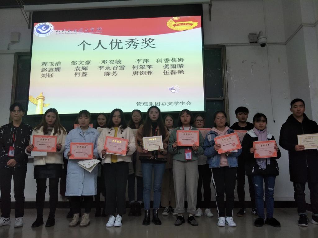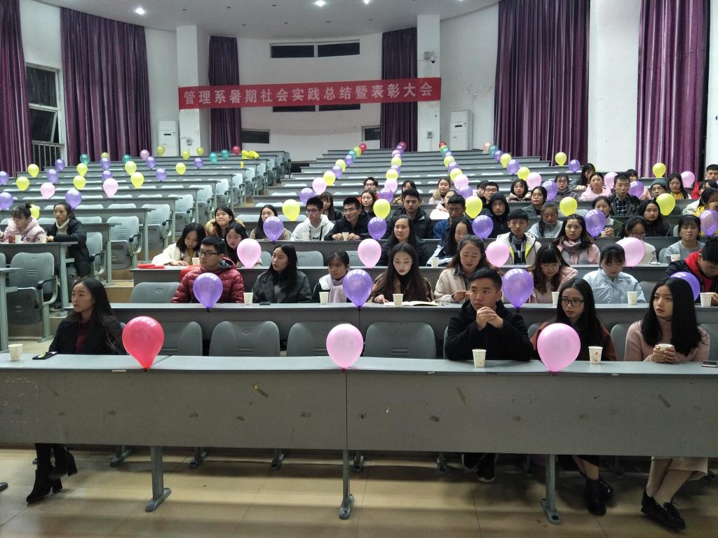 2018年11月20日晚7点10分,管理系暑期社会实践表彰大会在D101教室成功举行。我系团总支副书记李丽、学生会副主席赵倩、各部门负责人、优秀团支部、暑期社会实践先进个人及18级全体班委参加本次大会。
