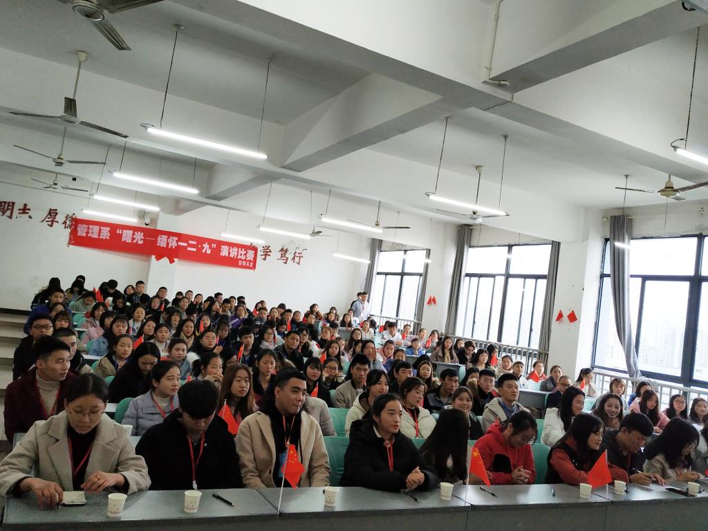 2018年12月6日下午2点30分,由我系组织部承办的“12.9”演讲比赛在A503顺利举行。管理系学生会各部门负责人丶干事及各班班委和各寝室室长到场观看比赛。