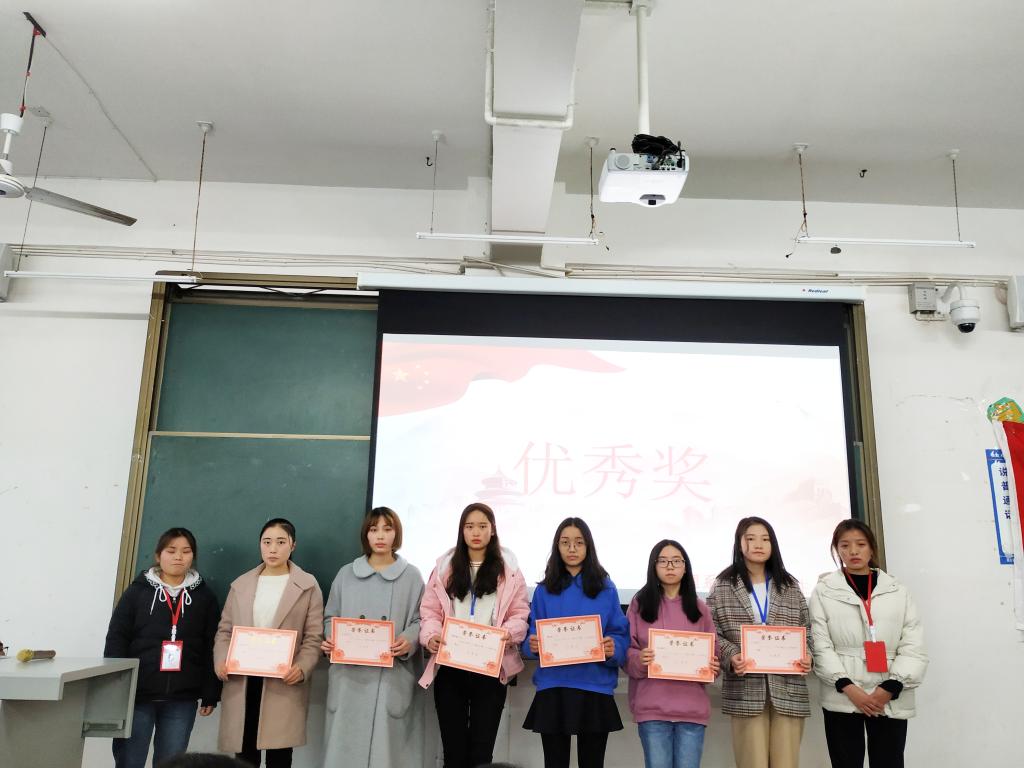 比赛正式开始之前,全场起立演唱了一首《光荣啊,中国共青团》,高亢激昂的歌声激起了在座各位的爱国情怀。紧接着,两位主持人宣布比赛正式开始。一共十九位演讲选手依次上台演讲,演讲选手的演讲饱含深情、深情款款、激情高昂,全方面展示了个人的演讲天赋,让观众切实的领悟到满腔的爱国情感。选手们用那坚定的眼神、用那充满力量的动作,无不体现出炎黄子孙的骄傲与自信,观众掌声此起彼伏。演讲结束后,全体人员观看了一段视频。之后是颁奖仪式,陈麒璐、谢佳琳、王红曼、何明耀、庄白滢、赖晓、谭景燕、次仁拉姆、彭佳佳、吴丽均、叶银琴、解咏春、徐秋艳等人获得优秀奖。陈海威、李玉莲、胡玲获得三等奖。杜全英、黄君薪获得二等奖。何明耀获得一等奖。管理系学生分会各部门负责人分别为获奖选手颁奖并合影留恋。最后,学生分会副主席赵倩为本次活动致辞,她让我们铭记历史,努力珍惜在校生活,为自己创造一个更美好的明天!至此,管理系一二九演讲比赛完美落幕!