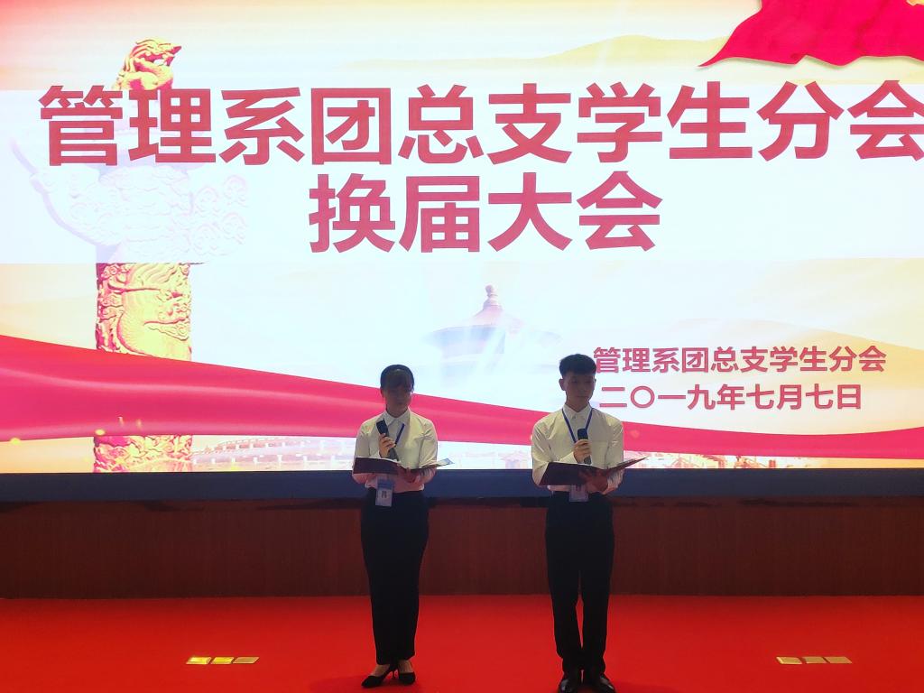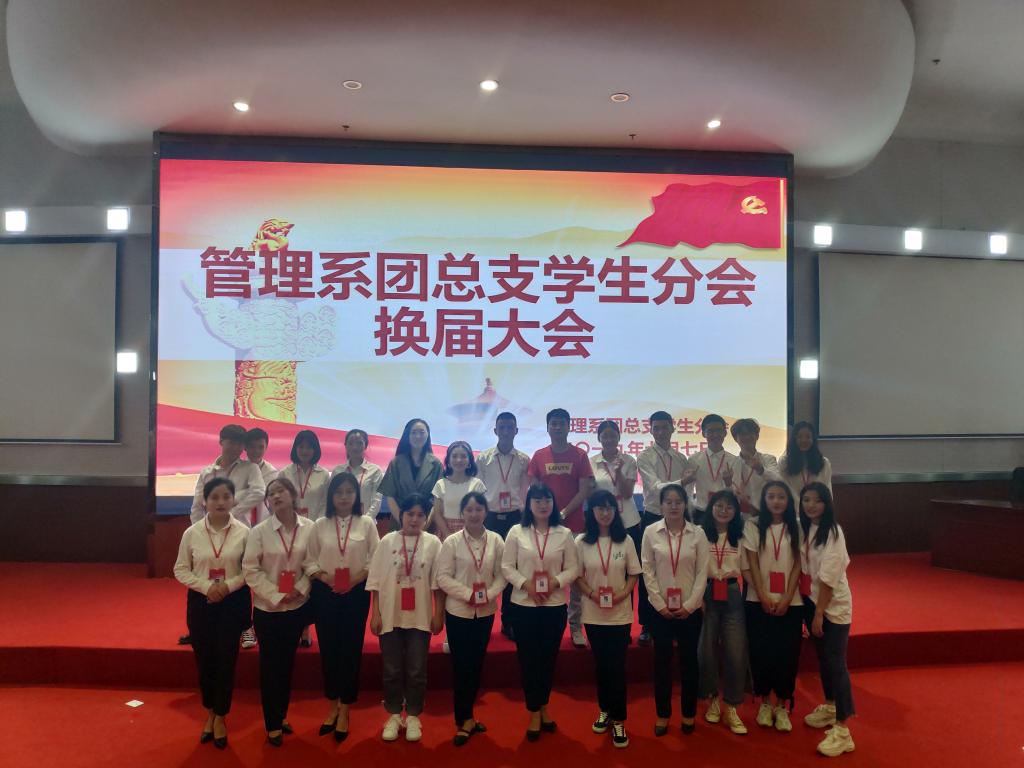 2019年7月7日晚上7点,管理系团总支学生分会第十六届学生干部换届大会在学术报告厅顺利召开。出席的嘉宾有:管理系党政办主任赵伟、团总支书记瞿慧芹、18级辅导员杨诗怡、16级辅导员杜丽。我系第十六届学生干部及干事参加了此次大会。