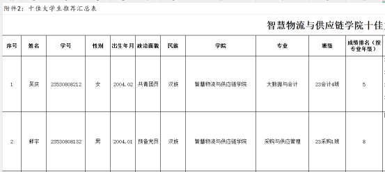 智慧物流与供应链学院2025年“十佳大学生”拟推荐名单