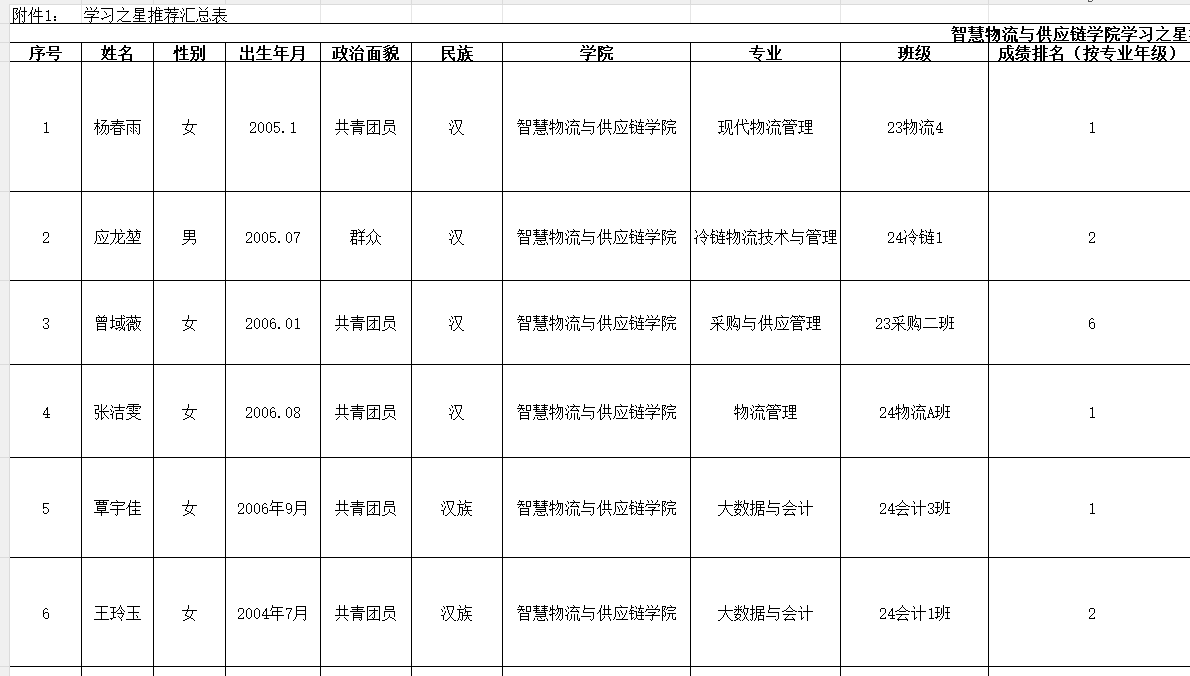 智慧物流与供应链学院第六届“学习之星”拟推荐名单