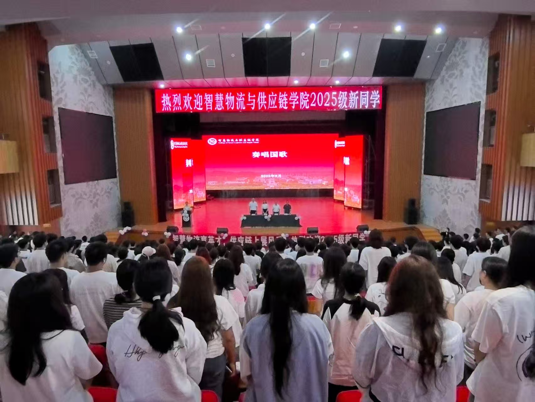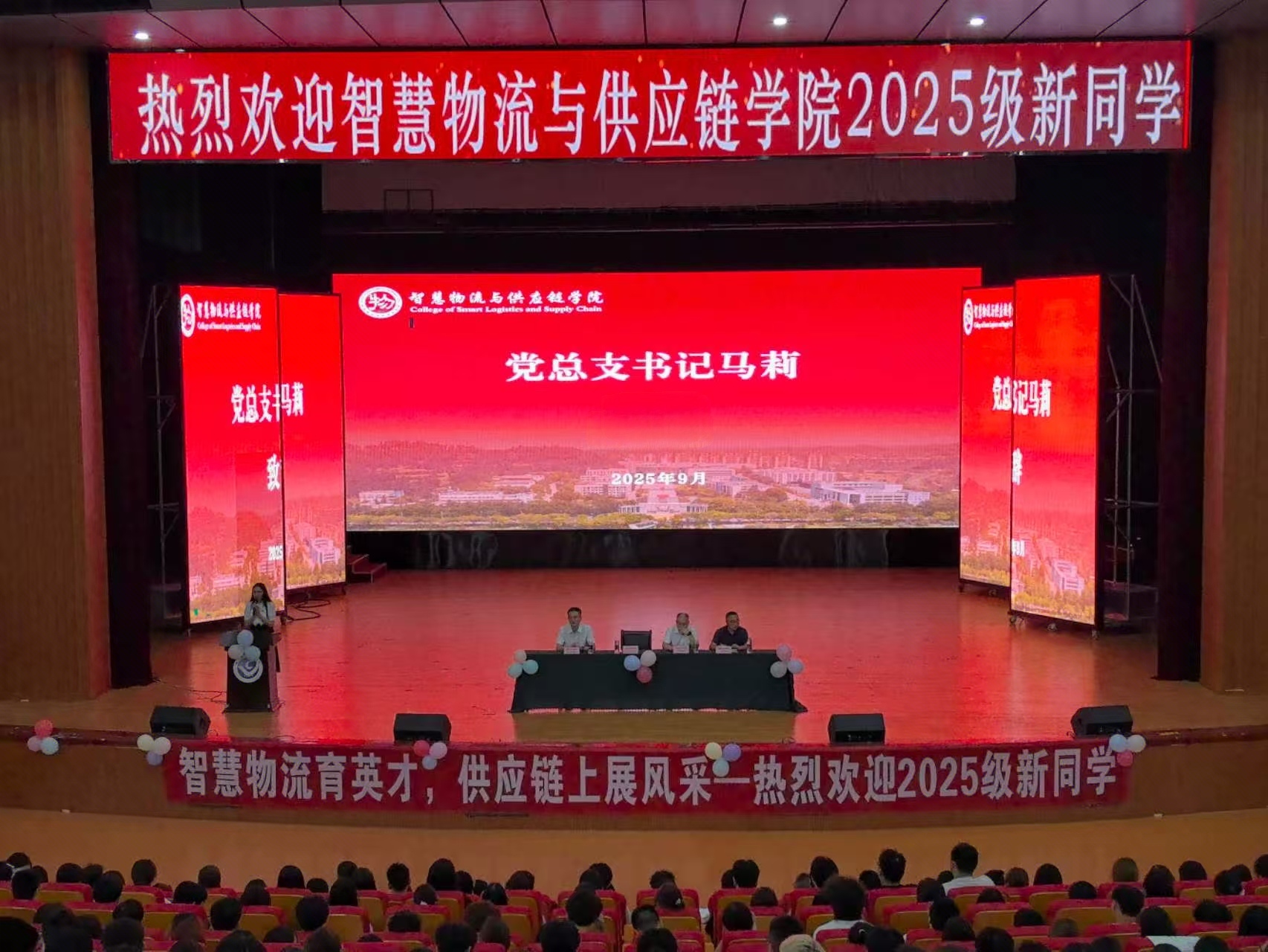 马莉以《大力弘扬伟大抗战精神争做担当民族复兴重任的时代新人》为主题,以9月3日纪念中国人民抗日战争暨世界反法西斯战争胜利80周年阅兵式为切入点,聚焦“弘扬伟大抗战精神”,带领新生回顾了中国人民抗日战争的壮阔历程,深刻阐释九三阅兵所承载的厚重历史意义。她强调,新时代青年需从伟大抗战精神中汲取奋进力量:既要以九三阅兵展现的强国气象为激励,深植家国情怀,铭记和平来之不易;更要立足物流专业特色与青年使命,结合发展趋势,在专业学习中磨砺本领、在实践探索中主动担当,积极投身产业升级实践,以奋楫扬帆的姿态追逐青春梦想,开启数智物流领域新征程。