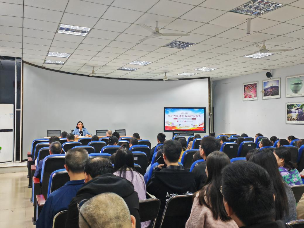第二课程围绕“强化作风建设 永葆政治本色”展开,马莉书记以“作风建设永远在路上”为切入点,通过讲解习近平总书记关于加强党的作风建设的重要论述、剖析典型案例、重温党章党规,强调党员需时刻绷紧纪律之弦。她指出,作风建设是党员队伍建设的“生命线”,要求全体党员以“严实”标准自我约束,在科研攻关、校企合作、服务师生等工作中发挥先锋模范作用。互动环节中,党员们结合岗位实际,就“如何防范形式主义”“提升服务效能”等话题展开热烈讨论,现场气氛严肃而活跃。