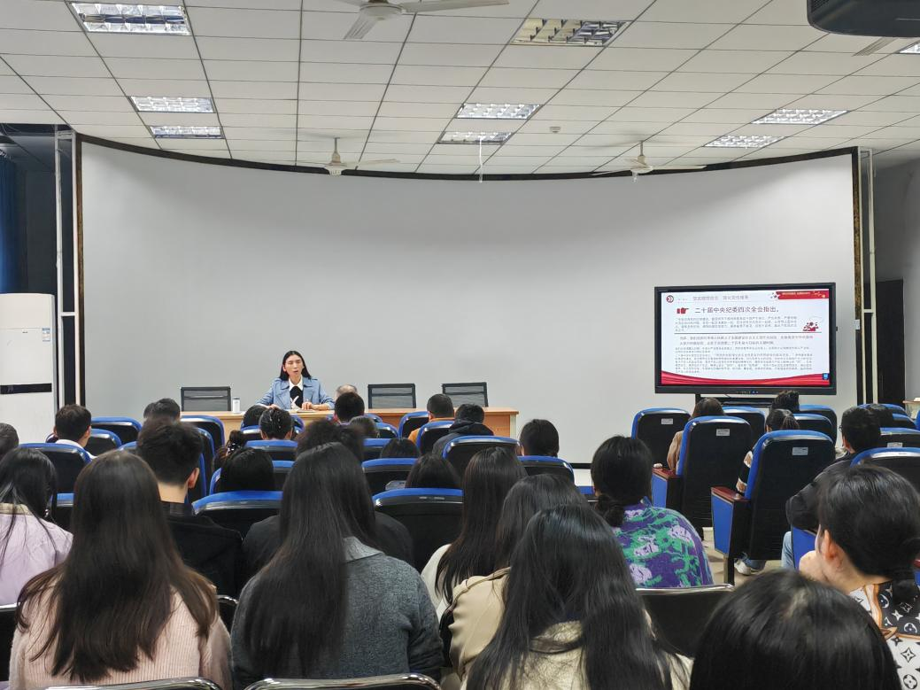 2025年10月16日下午,智慧物流与供应链学院组织开展党员全覆盖兜底培训,围绕“习近平新时代中国特色社会主义思想”和“习近平总书记关于加强党的作风建设的重要论述”两大主题开展系统培训,覆盖全体党员,通过专题授课、集中研讨等形式,推动党员教育走深走实。学院党总支书记马莉担任主讲人,为全体党员带来了一场思想深刻、内容丰富的专题培训,全面提升党员政治素养和党性修养。
